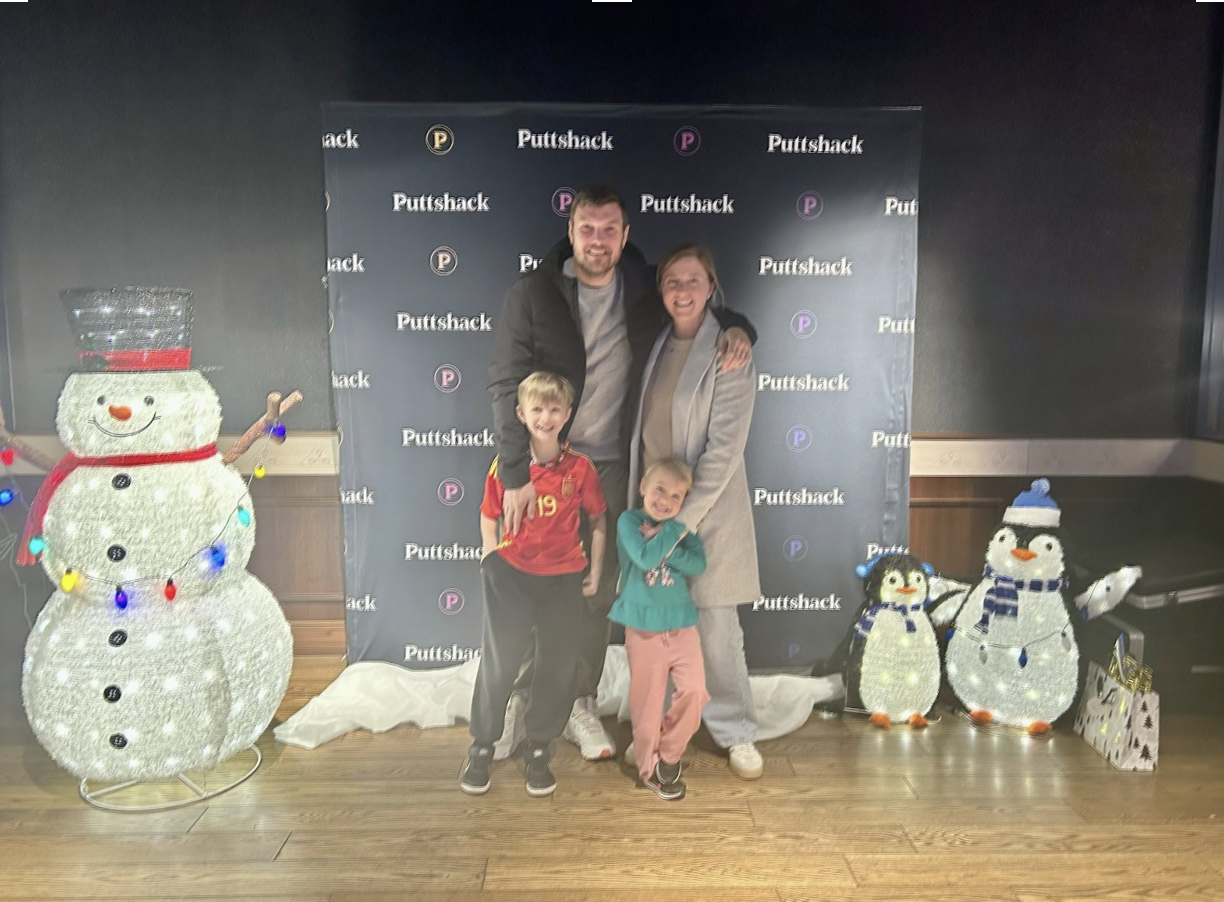The Ebbutt family pause for a photo together at Puttshack – Nashville.