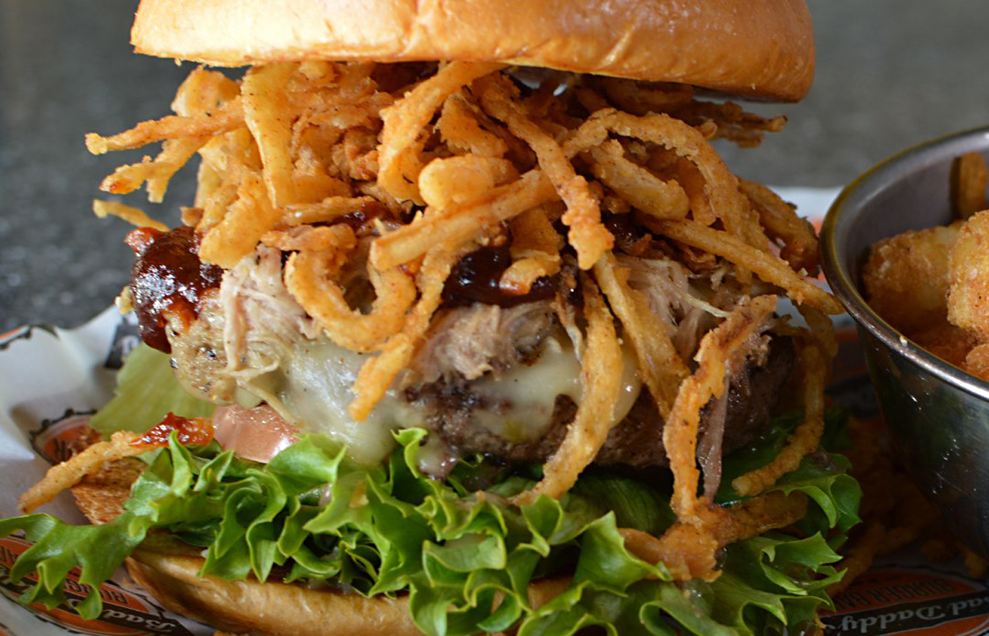 Bad Daddy's offers a create-your-own menu. Pick the bread: Brioche bun, multigrain bun, lettuce wrap, Texas toast, rye bread, no bun or even a gluten-free bun. Choose from a bison burger or their signature Angus blend, buttermilk fried chicken breast, grilled chicken breast, turkey burger, black bean burger, buffalo burger or tuna burger. Then, choose from one of the many items to stack it high with. Not sure of what to get, choose from the menu of signature items already thought out.