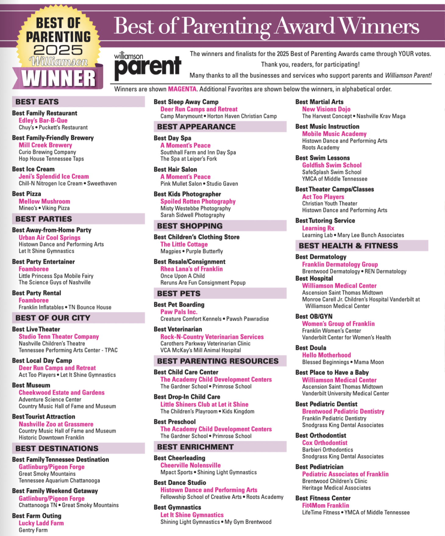 NASHVILLE – Best of Parenting WINNERS: