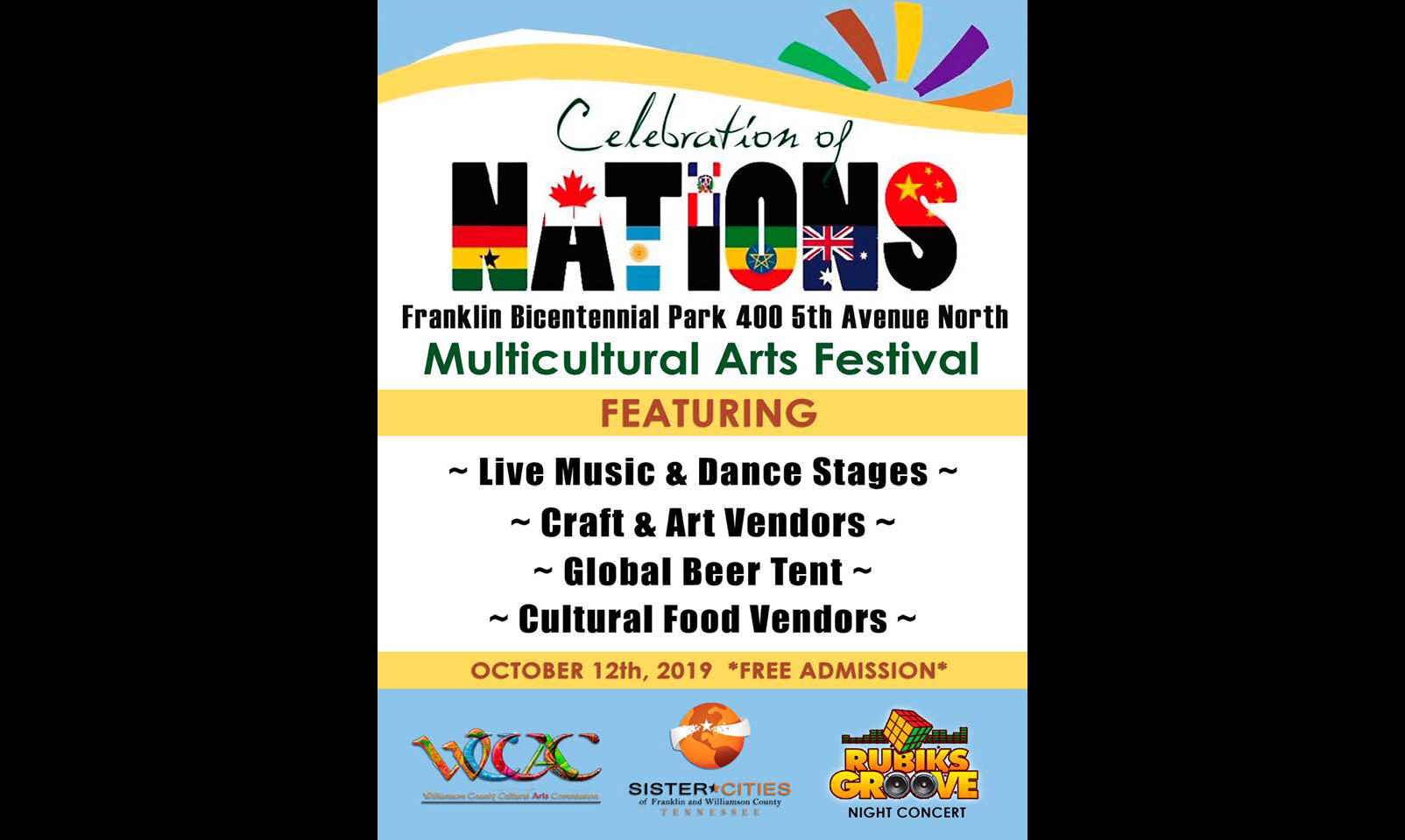 The event will be held at Bicentennial Park in Franklin at 400 5th Ave N, Franklin, TN with the free bazaar taking place from 10 a.m. – 6 p.m. and the concert taking place from 6 p.m. – 9 p.m. on Saturday, October 12.