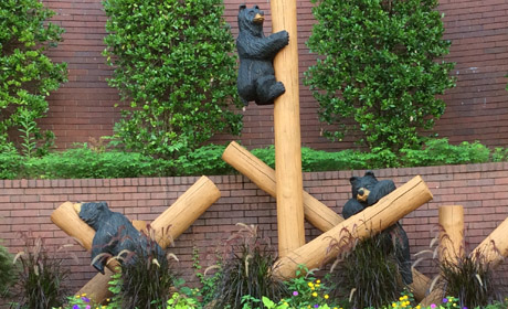 Featured picture: The carved bear sculptures outside the Fontanel mansion echo a similar theme inside the home. The three bears represent the Mandrell children Jaime, Matthew and Nathan.
