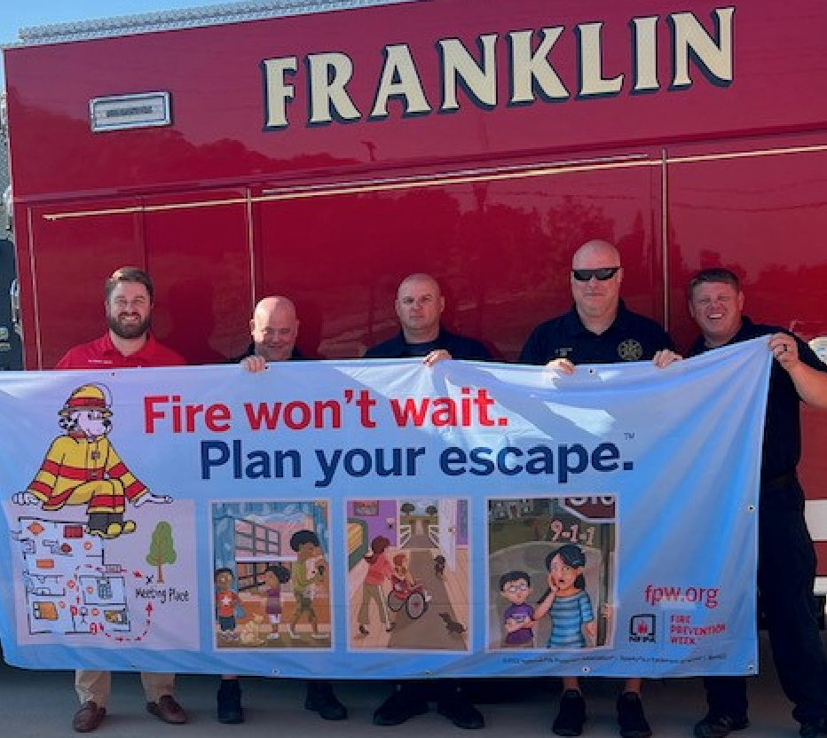 The Franklin Fire Department is teaming up with State Farm and the National Fire Protection Association® (NFPA®) to promote this year’s Fire Prevention Week campaign, “Fire Won’t Wait. Plan Your Escape.” This year’s campaign, October 9 – 15, works to educate everyone about simple but important steps they can take to keep themselves and those around them safe.