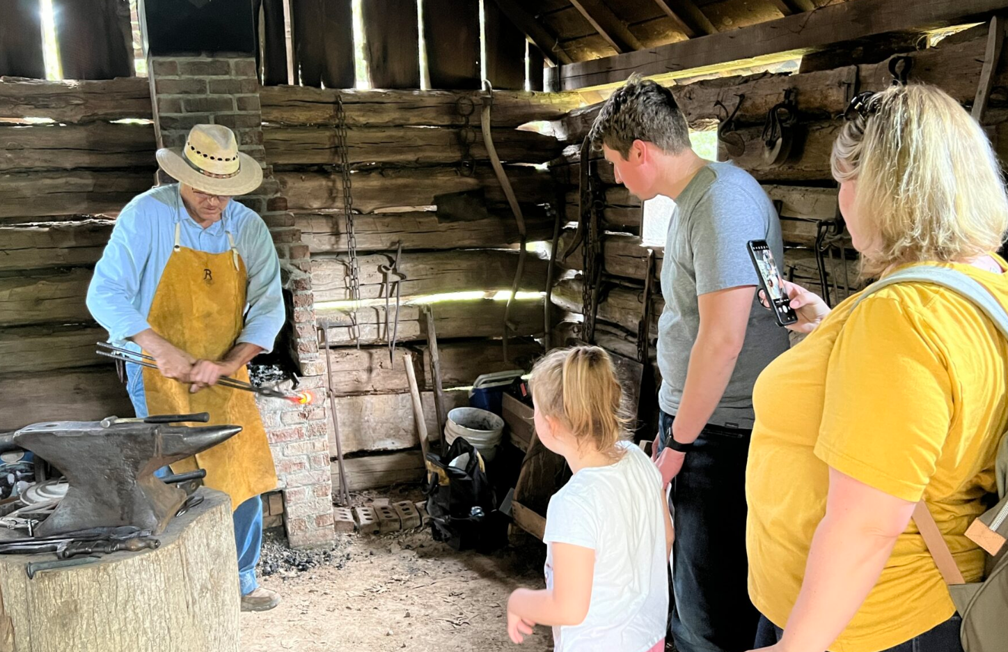 - Blacksmith demonstrations, forging metal to make items such as horseshoes, hinges, farm tools, etc.