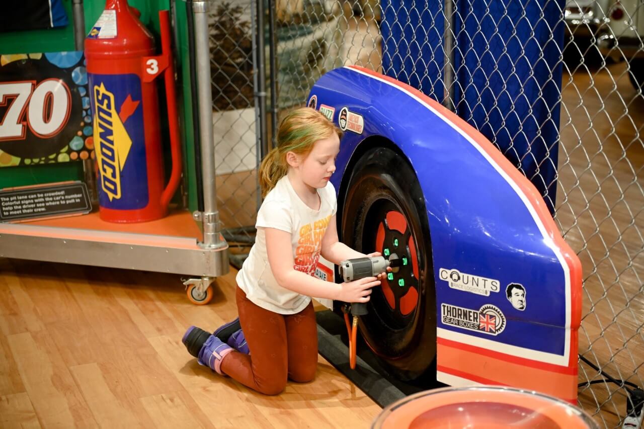 Children and families will love the Pit Stop Challenge in which they can race the clock – and their family and friends – to change tires and refuel cars. A 6-lane downhill speed track, booster power track, adjustable angles track, and timing track are just a few of the ways visitors will be able to test their theories regarding the science of racing and cause and effect. Real race car parts, authentic artifacts, and captivating memorabilia including Corvettes from the National Corvette Museum’s collection will round out the experience.