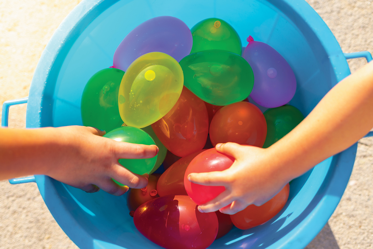 BALLOON TOSS: An outside activity, kids love tossing jiggly balloons to each other, and it’s oh-so-fun to watch them pop!