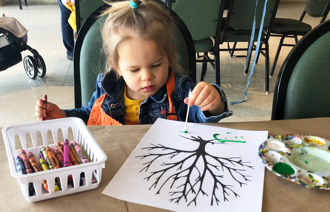 Each week presents a new theme, and each can be found on Cheekwood's website. With an option to color or paint, my toddler did both, so we got right down to painting the four seasons on the handout Cheekwood gave us.