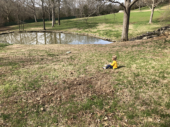 Sadie relaxes on Cheekwood's hillside overlooking the pond after her Tuesdays for Tots experience.