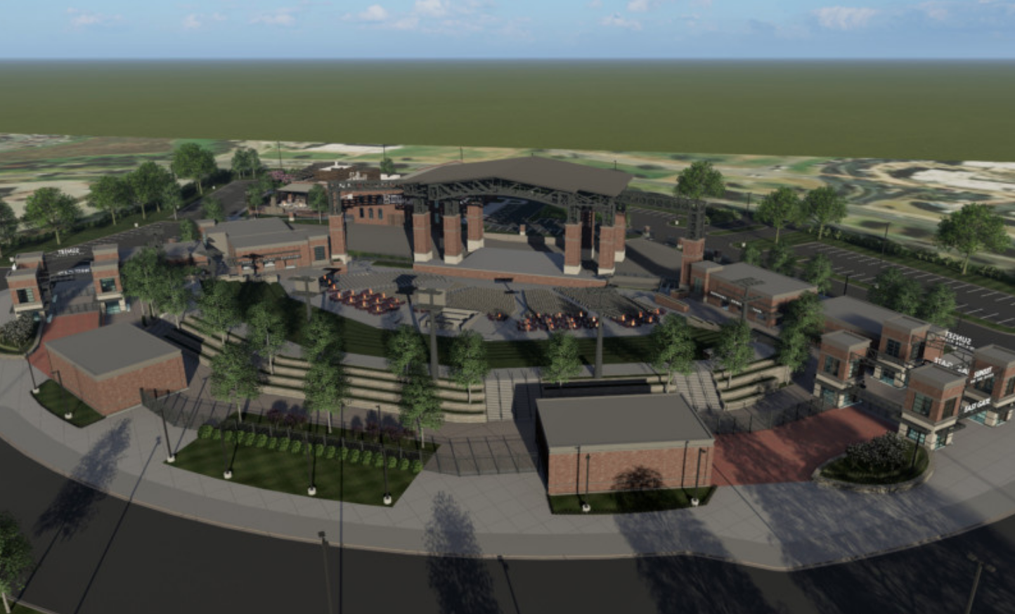 The multi-million-dollar Sunset Amphitheater will host large touring acts on a live music entertainment campus featuring amenities including 32 firepit suites alongside stadium-style seating and casual lawn seating. Livestreaming from the amphitheater and the neighboring indoor venue, the Boot Barn Hall, are anticipated. The facilities will be located on the 18.2-acre City parcel located on the southeast corner of Medical Center Parkway and Gateway Boulevard.