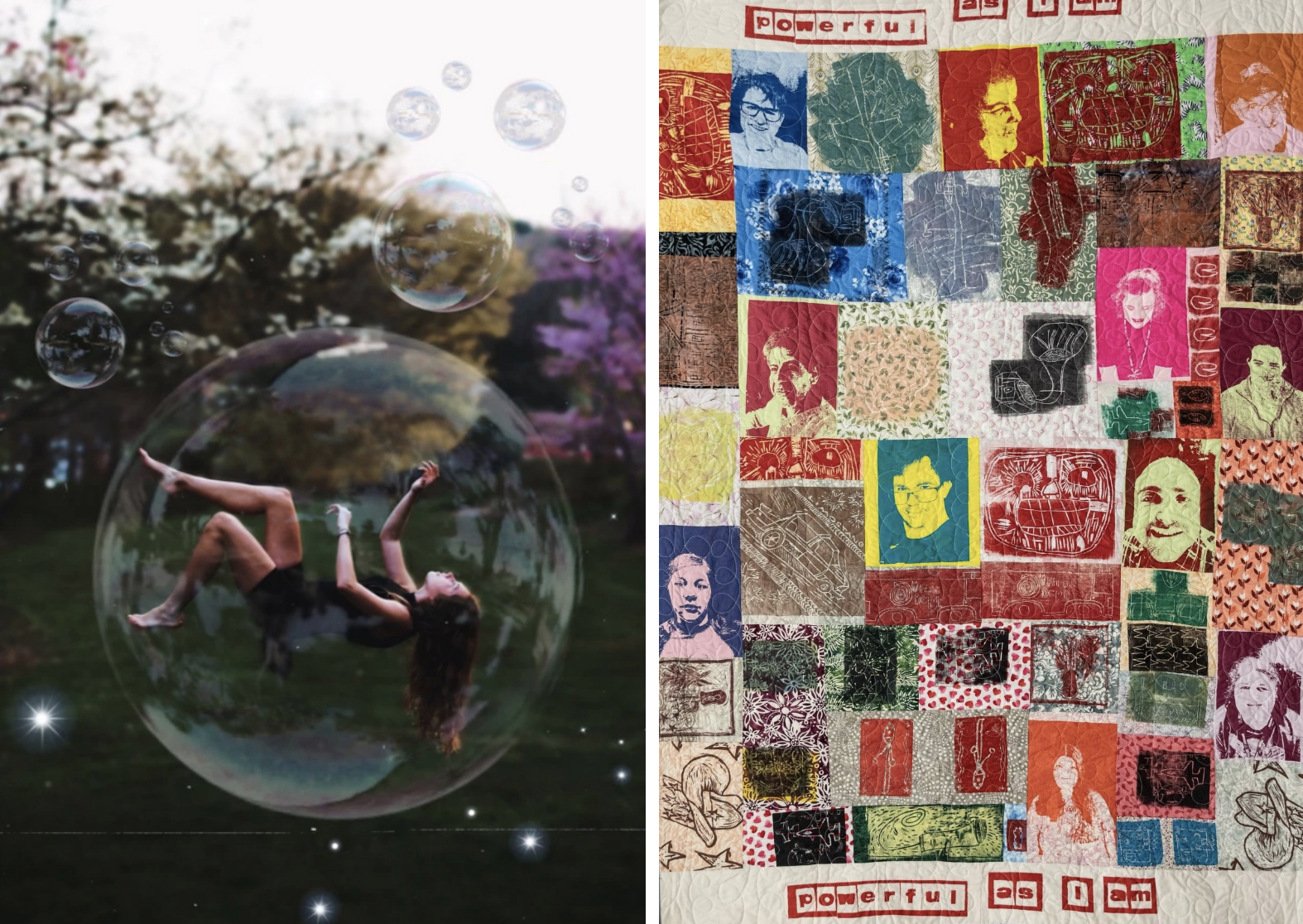 Some artists took photographs that reflected their challenges and strengths, others created abstract work with fabric and textures to express devastation and revitalization. There is even a quilt made of symbolic images next to portraits to celebrate community and individuality.