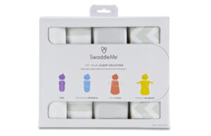 This set (available in grey, pink and blue) includes four different items to swaddle baby in various stages of his growth. The Pod and Original Swaddle recreate your womb and prevents the startle reflex during the first three months of life. The WrapSack is perfect for the swaddle-to-blanket transition, and the Wiggle is actually a wearable blanket baby wears for sleep time.