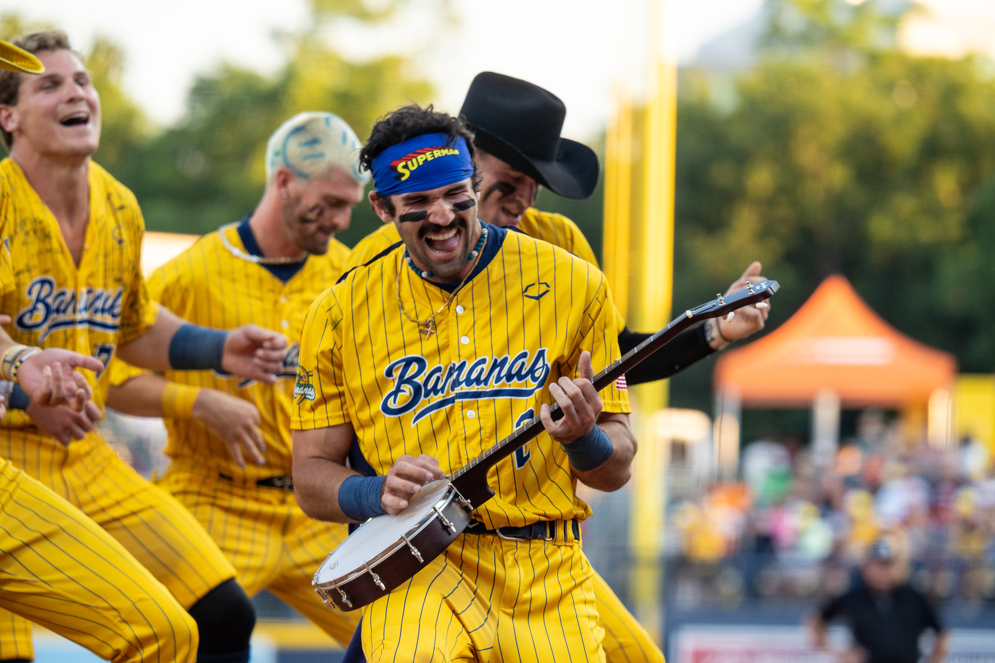 Banana Ball is a fast-paced, action-packed style of baseball with rules that include no bunting, a two-hour time limit, fans catching foul balls for outs, batters stealing first base, and a one-on-one tiebreaker showdown at the end of the game if it’s tied.