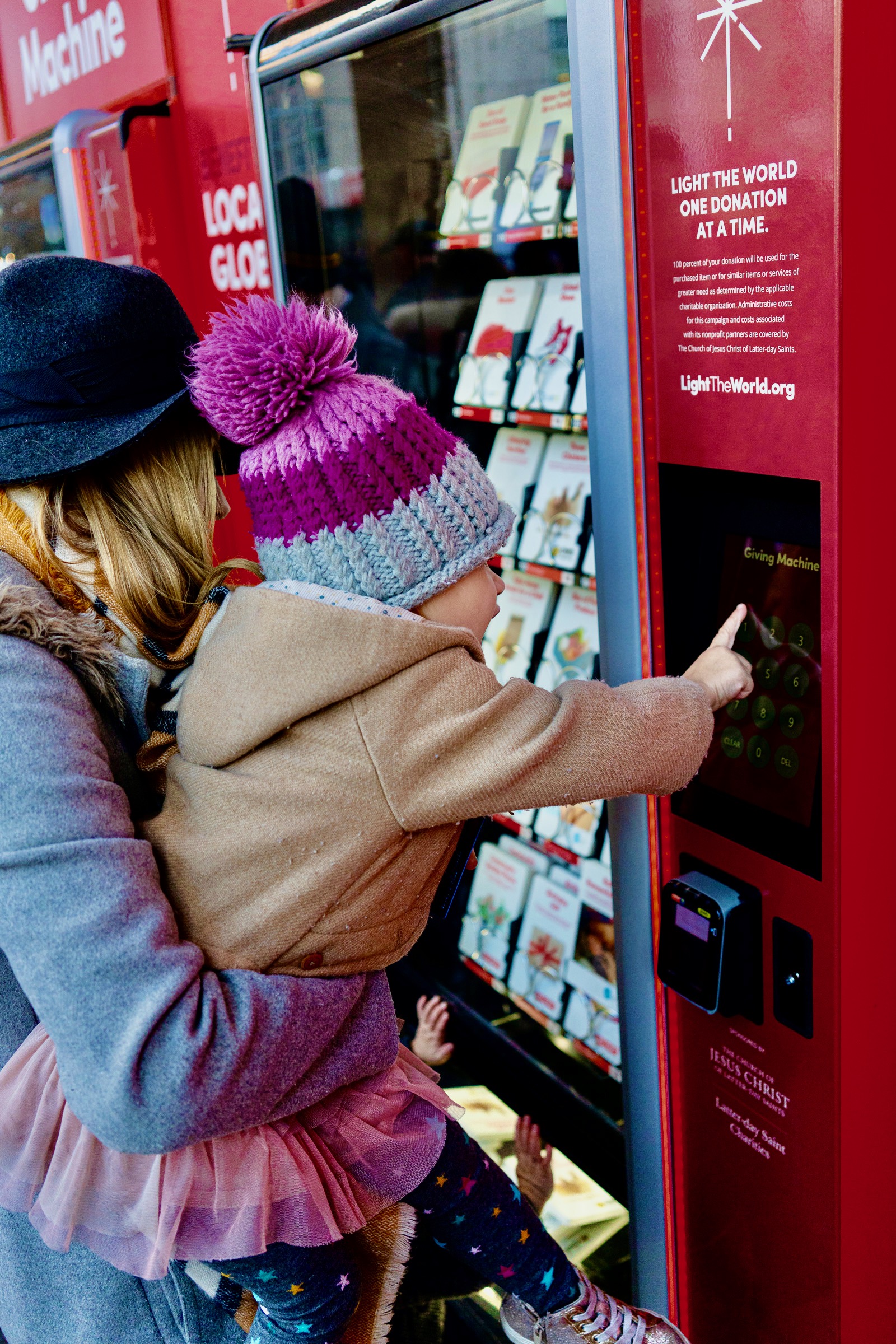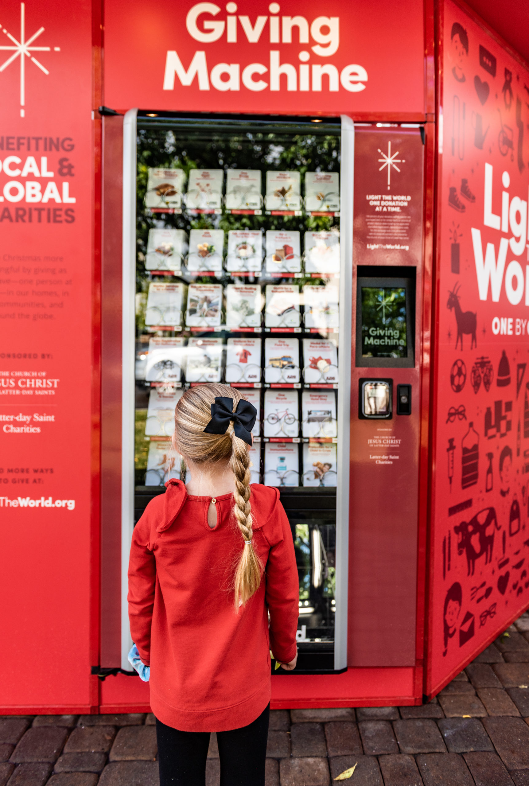 The #LighttheWorld Giving Machines were started in 2017 by The Church of Jesus Christ of Latter-day Saints who cover the operating costs of the machines so that 100% of all donations made go directly to the charities. The machines have raised more than $22 million dollars and are in more than 60 cities worldwide. This is Middle Tennessee’s third year hosting the machines. The charities featured this year are The Branch, Bridges DVC, Greenhouse Ministries, Habitat for Humanity, African Girls’ Hope, CARE, and American Red Cross.