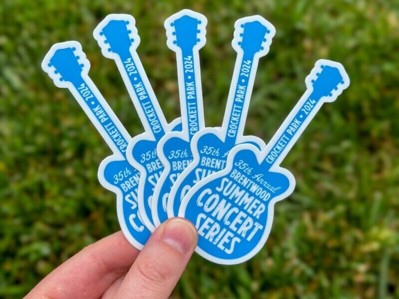 New for this year, the City will be giving away a limited number of free custom vinyl stickers commemorating the 35th year of the concert series. Giveaways will be at the City of Brentwood table near the amphitheater, starting at 5:30 p.m.